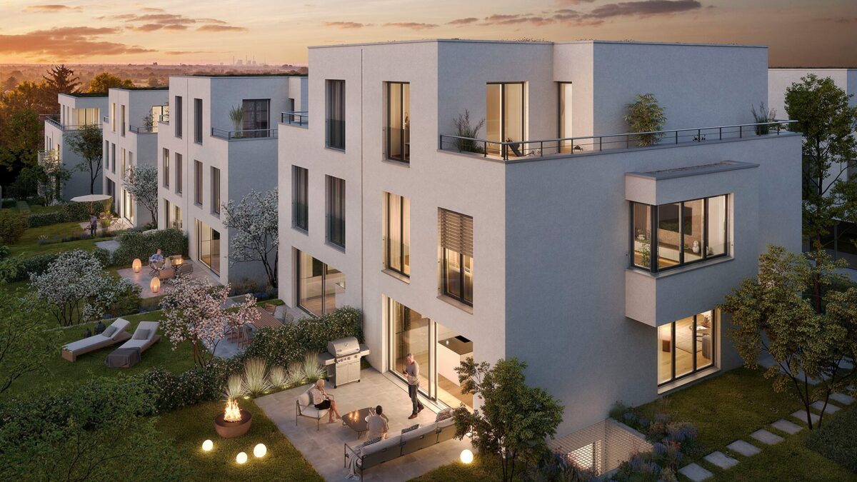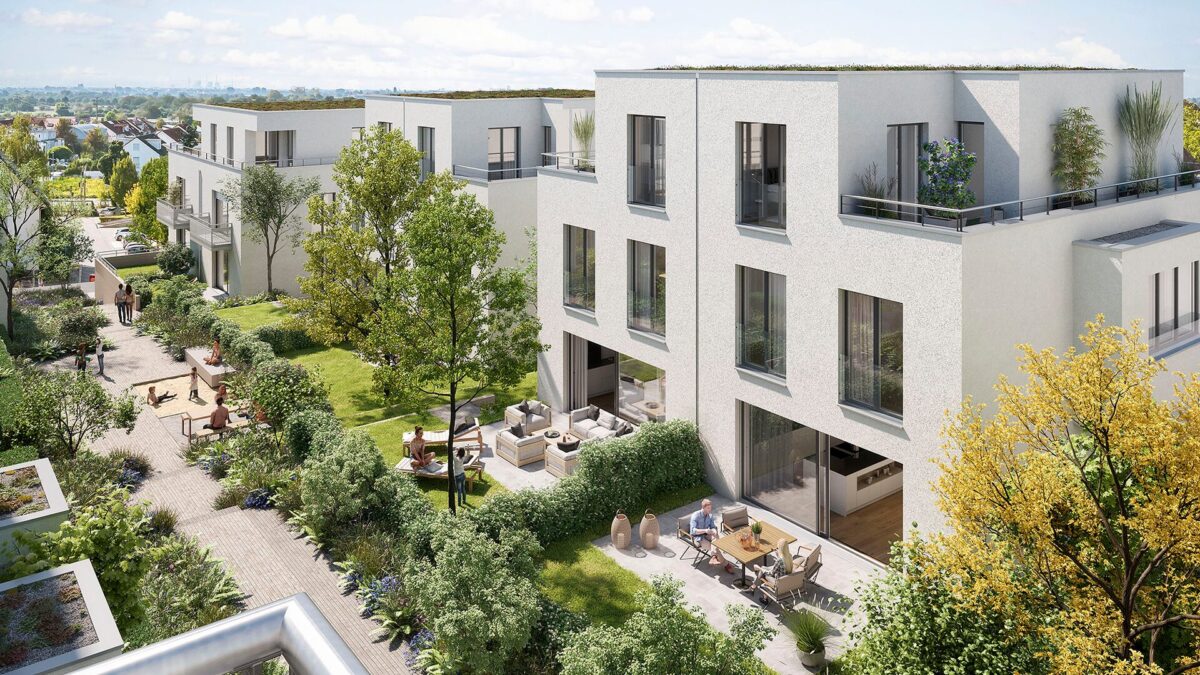 Moderne Architektur verbunden mit nachhaltigem Wohnen im Grünen: Die durchdachte und konsequente Gestaltung aller Bereiche schafft eine harmonische Balance zwischen Privatsphäre und Nachbarschaft. Eine Vielfalt an Gestaltungsmöglichkeiten bietet darin Raum für Menschen unterschiedlichen Alters und individuellen Lebensentwürfen. Private Wohnwege verbinden gärtnerisch gestaltete Freiflächen und schaffen Raum für nachbarschaftlichen Austausch.